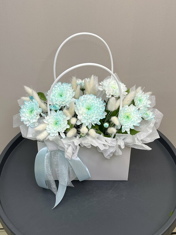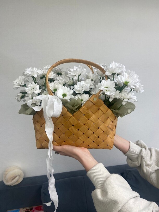 Цветы свежие, корзинка большая, тяжелая, добротная.