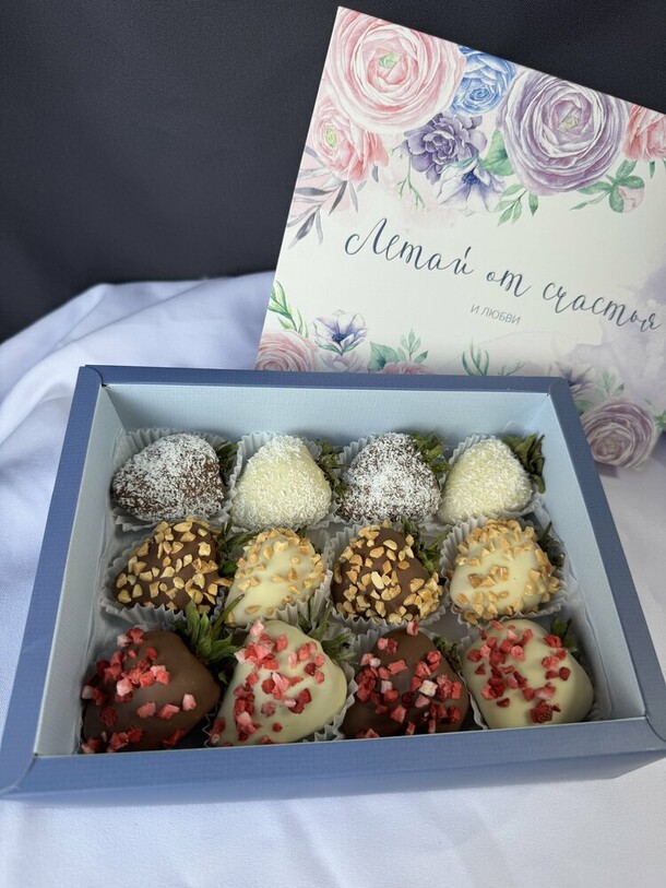 Клубника понравилась. Вкусная, с небольшой кислинкой. Шоколад тоже вкусный. Упаковали красиво, можно сразу в гости идти👍🏼 По времени набор был готов даже раньше, чем запланировано.