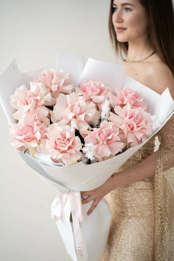 в реальности букет намного меньше чем на фото, такое чувство, что на заднем фоне у них снимается ребёнок, чтобы букет казался больше