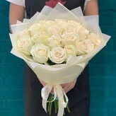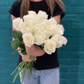 Букет белых роз из 15 шт, красивый букет цветов 50 см, букет живых цветов, Россия, арт: 1591
