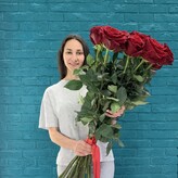 Букет 51 роза красная, большой букет на день рождения 50 см, букет живых цветов, Россия, арт: 1599