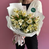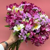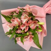 Авторский букет из кустовых роз, альстромерии и эвкалипта «аврора»