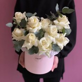 Коробка из кустовых роз с эвкалиптом