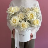 Авторская шляпная коробка с розой и гипсофилой «селин»