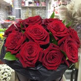 Букет красных роз из 15 шт, красивый букет роз 50 см, букет живых цветов, Россия, арт: 1605-1