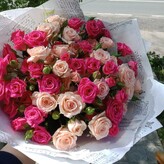 Букет из пионовидных кустовых роз мисти и бомбастик