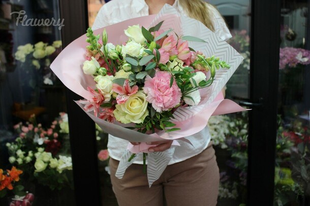 заказывала в первый раз через сервис flawery, немного не хватило взаимодействия при подтверждении заказа. тем не менее, доставили букет как на референсе в карточке товара, курьер был вежлив и доставили все во время