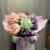Букет гортензия диантус и маттиола