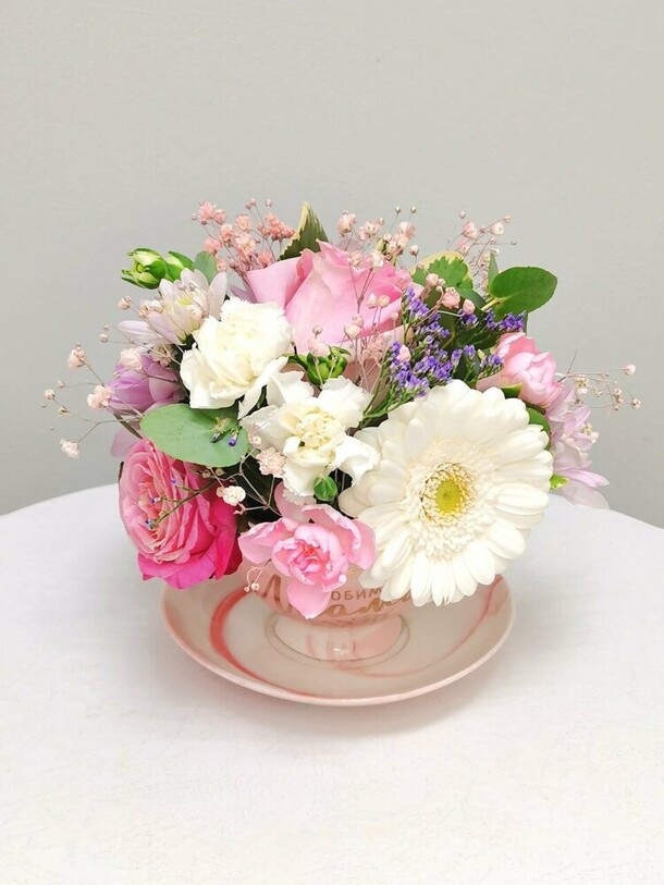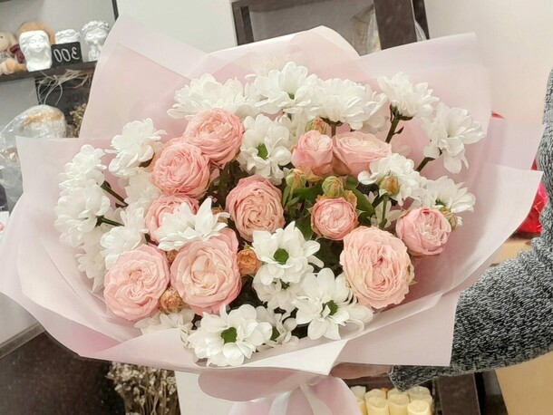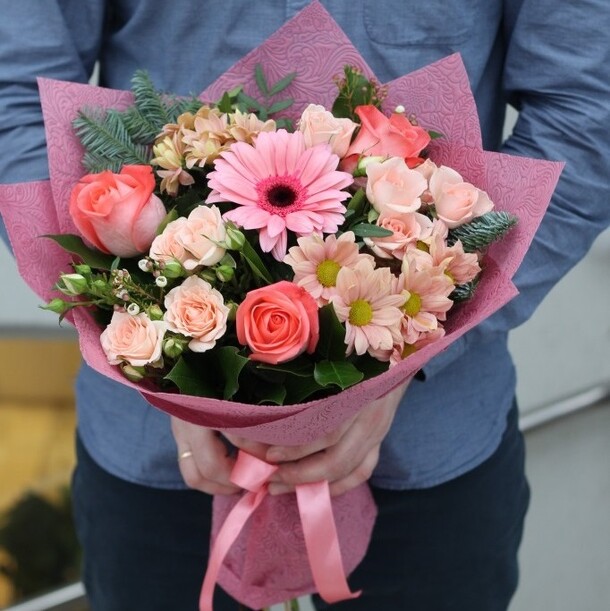 Букет для мамы к 8 марта, заказ делали из другого города, букет очень нежный, доставлен в срок, с полным отчетом, мама растрогана, сюрприз удался, спасибо за Вашу работу!