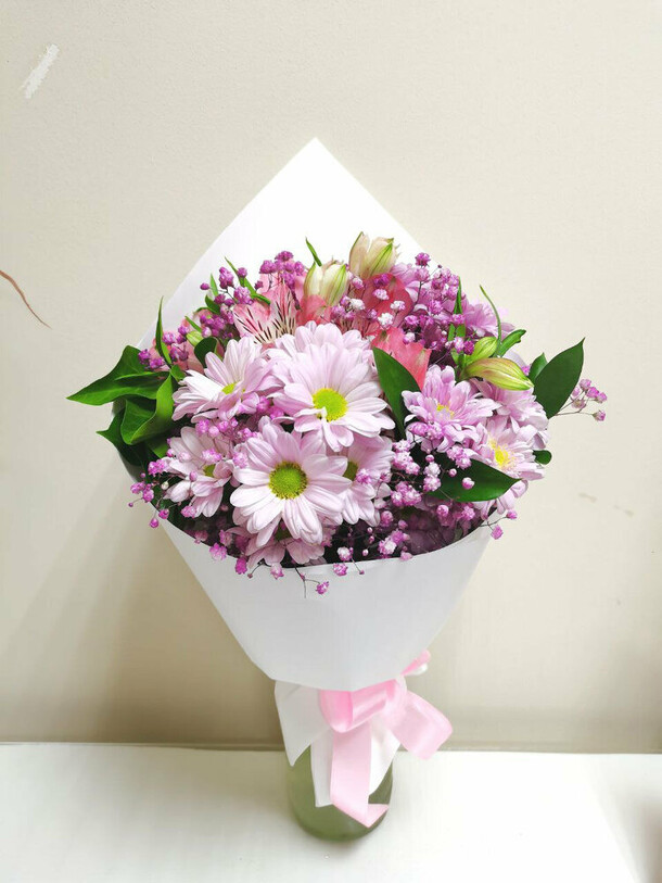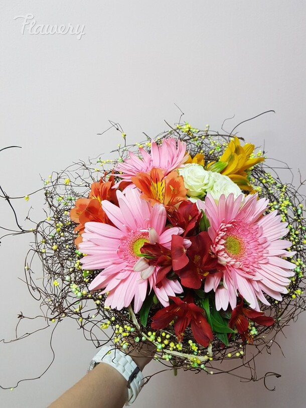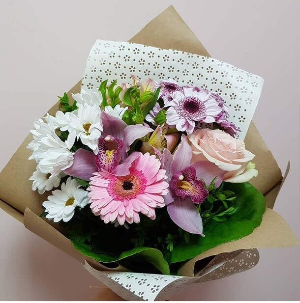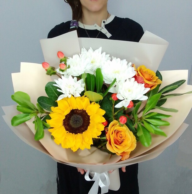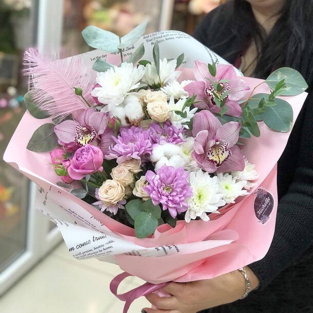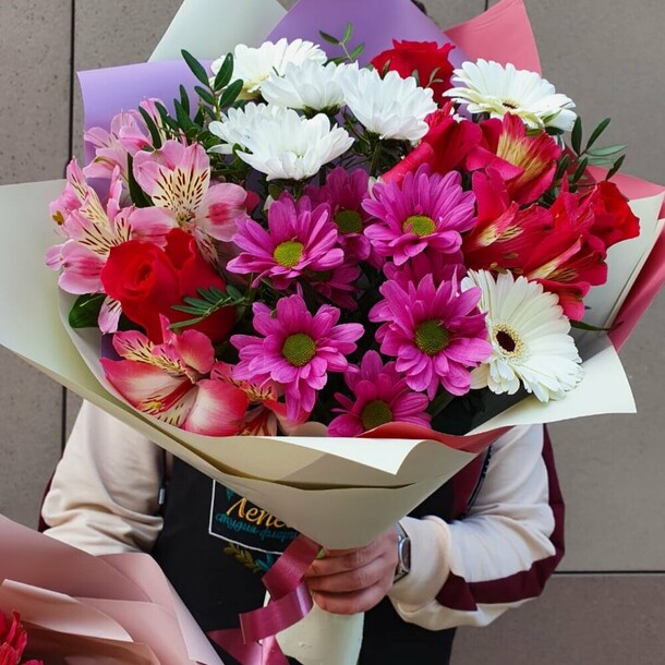 Прекрасный букет,цветы свежие.Доставлен во время,без лишних звонков и уточнений.Быстро,качественно.Большое спасибо,заказывая из другого города буду знать,что на вас можно положиться.