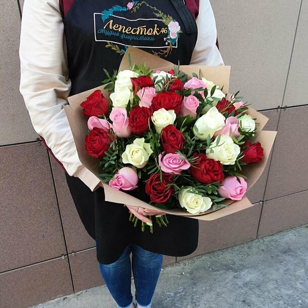 Спасибо большое!!!Делали заказ из Москвы в Курск, букет оформлен как на картинке всё супер! Доставка вовремя!!! Всё просто и понятно!!!