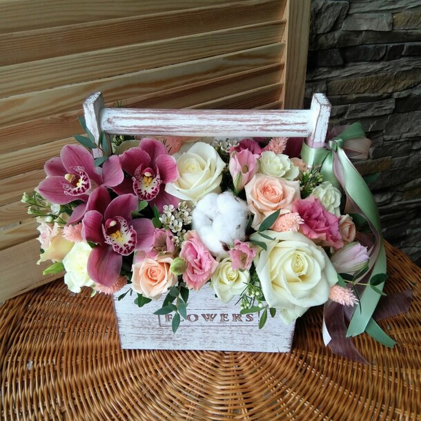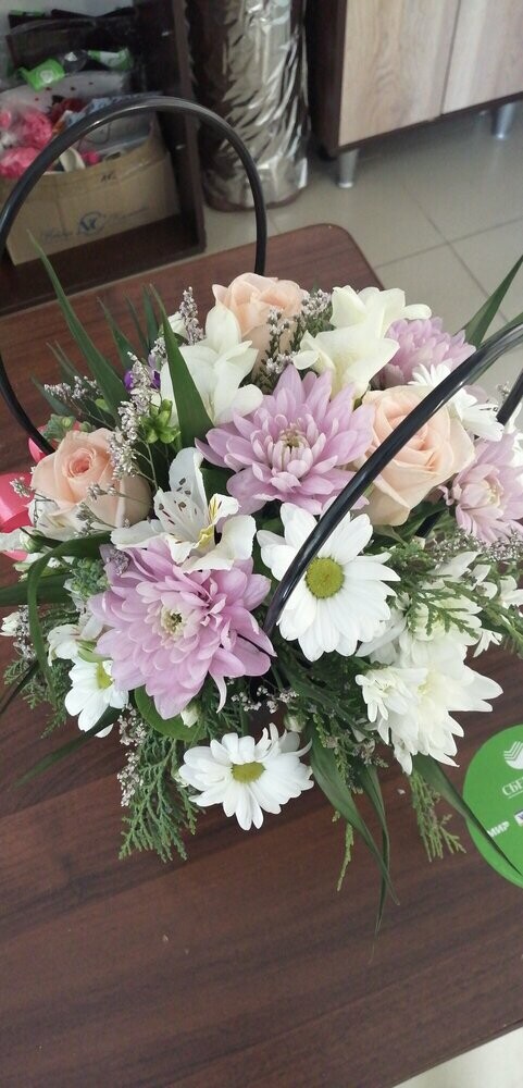 Очень нежная корзинка с цветами! Заказ собрали в соответствии с описанием, цветы свежие. Доставили быстро. По просьбе приложили открытку с пожеланием. Огромное спасибо, я довольна выбором, а именинница - букетом;)