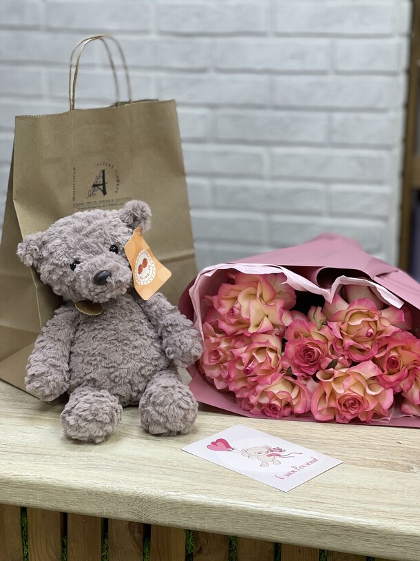 Букет очень красивый,маме очень понравилс.Но только ленточка не того цвета,а в остальном все супер.Спасибо.