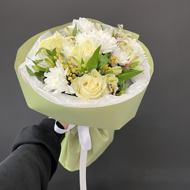 Букет красивый, нежный, в главное цветы свежие .спасибо девочкам за их труд . Удачи и процветания