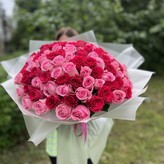 Букет 51 роза красная, большой букет на день рождения 50 см, букет живых цветов, Россия, арт: 1599