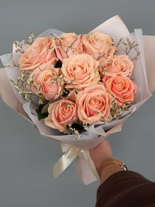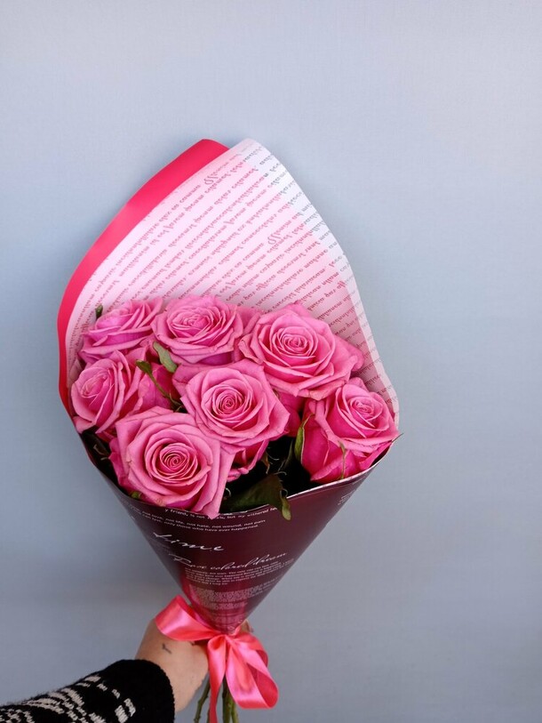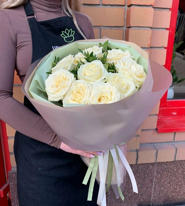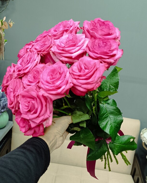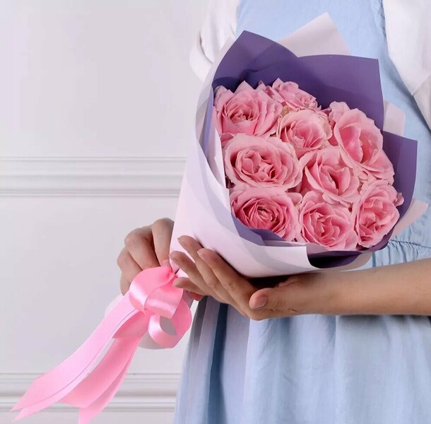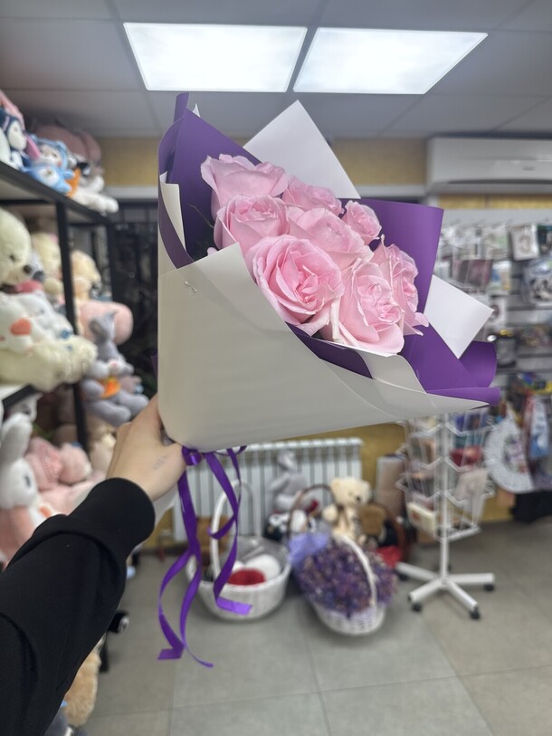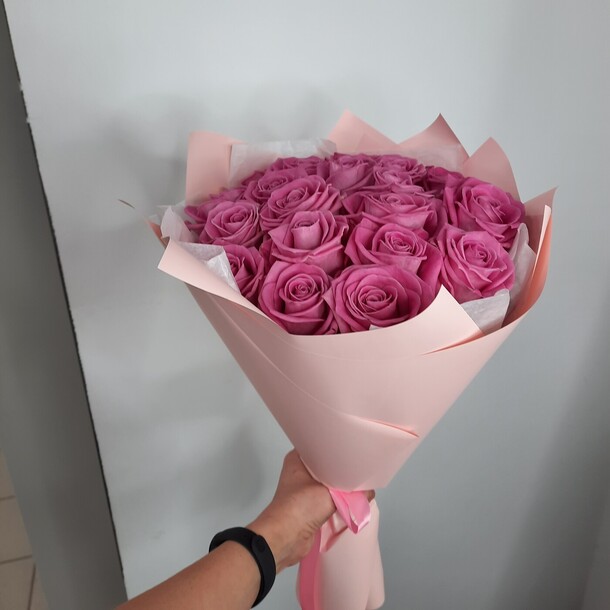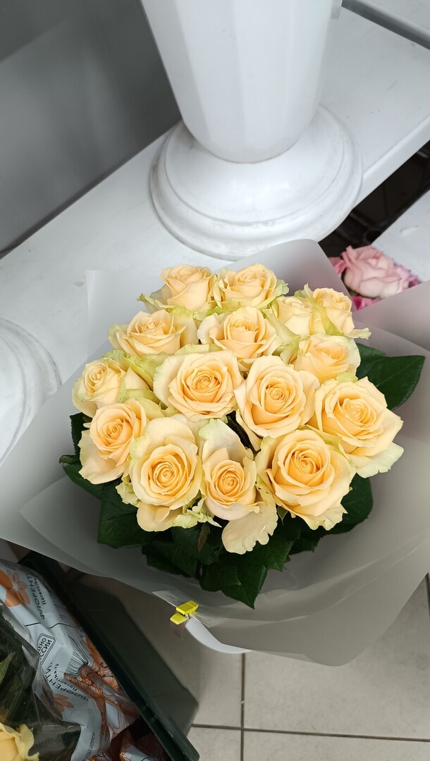 приятная девушка выдала букет . рассказала ,как необходимо ухаживать за цветами,чтобы простояли,как можно больше.милый букет из 15 роз,за приятную цену.