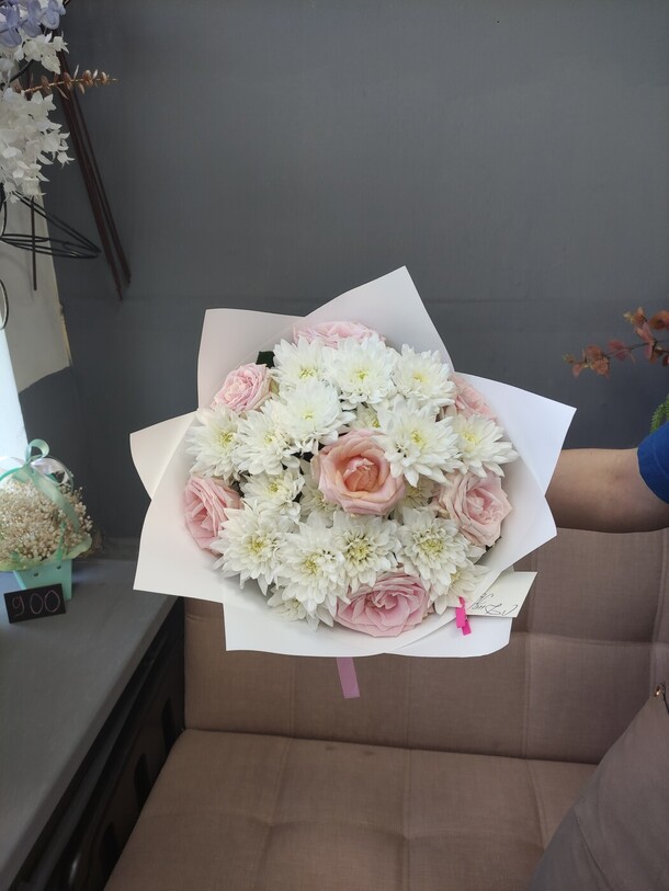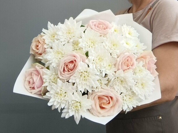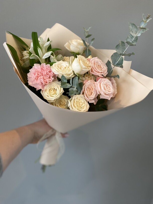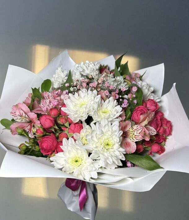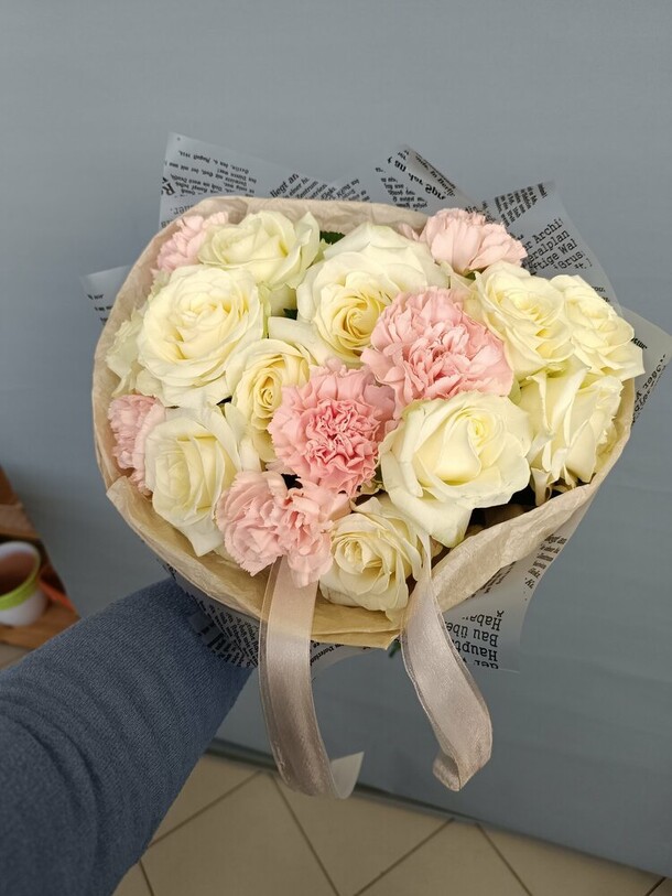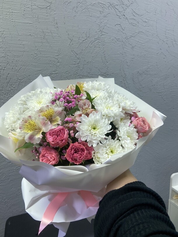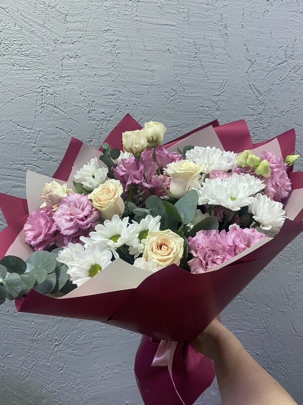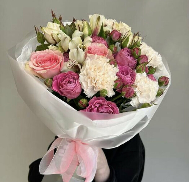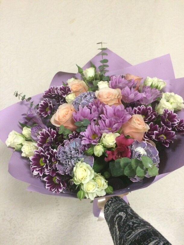 Очень красивый букет! Немного отличается от фото, но не критично. Доставлен вовремя, цветы хорошенькие, свежие. И цена приятная. Большое спасибо!