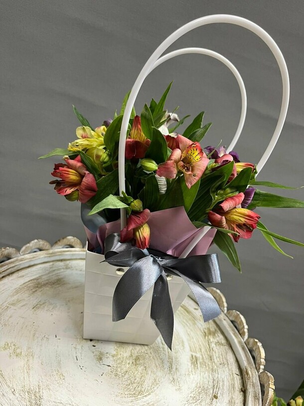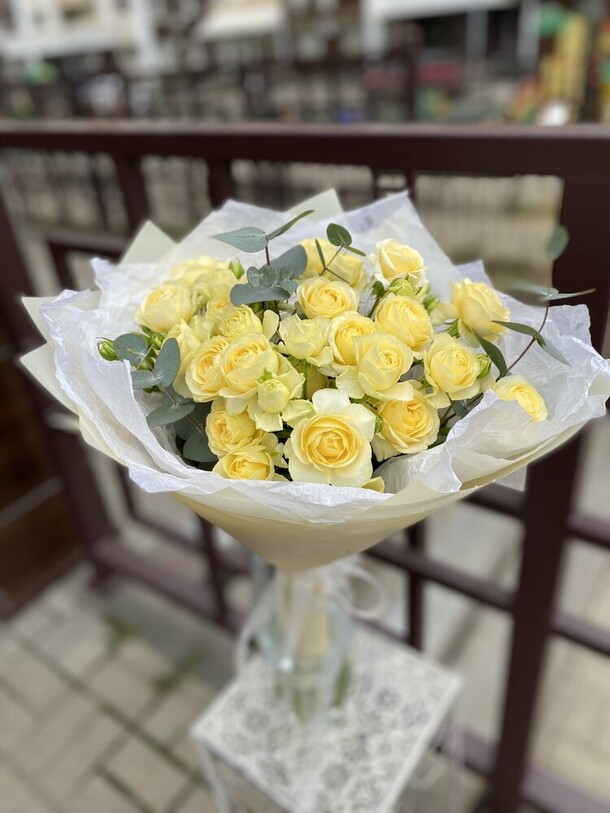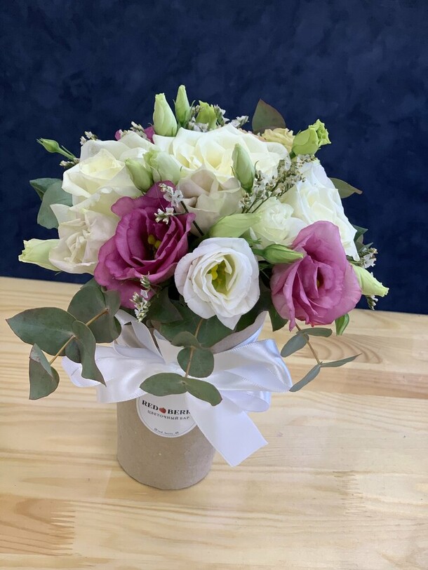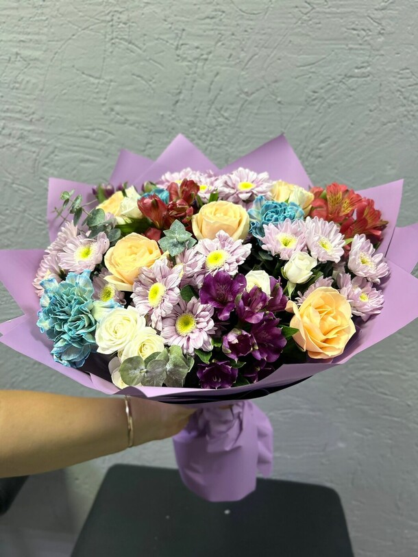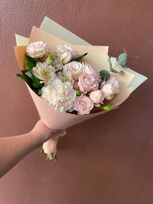 Красивый букет, собран хорошо, спасибо флористу. Единственное, на фото казался немного больше чем по факту, но заявленным размерам соответствует.