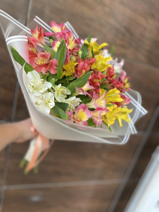 Очень расстроило. Заказал букет 13 альстромерий. После сборки, прислали фото, где как показалось, цветов было меньше и добавлены розы. Решил, что вместо альстромерий проведена замена. Написал в магазин, задав вопрос о составе заказа. Меня уверили, заказ собран верно и мне дополнительно добавили розы.Приятно казалось бы. В итоге забрал, безусловно красивый букет, а проверил уже позже. Видно по количеству ножек, там вместе с розами 11шт, вместо 13 изначально. Тоесть не добавили, а даже сократии.