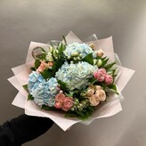 Сборный букет живых цветов из хризантем, гипсофил и белой розы, арт: 1794