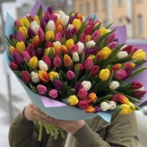 Букет живых цветов - 101 тюльпан микс, размер xl, высота 40 см, голландия, арт: 334