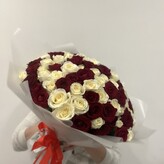 Букет из 5 красно-белых роз и 4 альстромерий микс, арт: 3122