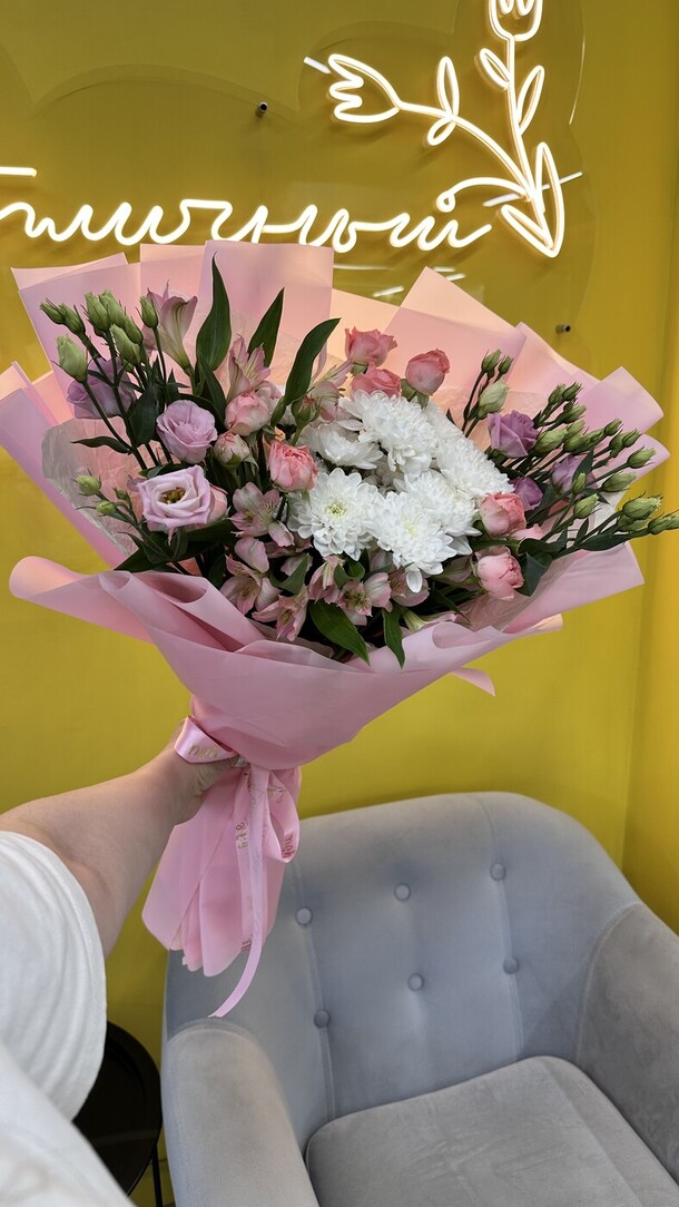 Доставка вовремя, букет красивый, все пожелания были учтены. Спасибо!