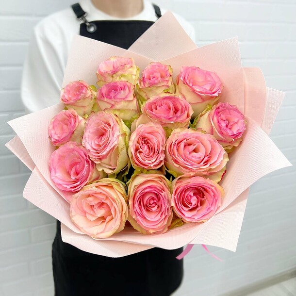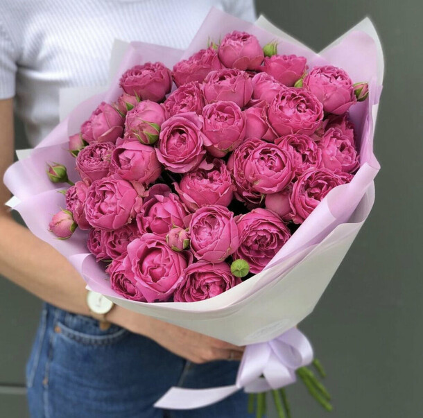 В целом все хорошо, но видимо во время доставки цветы под другими букетами лежали и сплюснулись, в итоге приехал не круглый букет, а овальный и сильно сплюснутый.