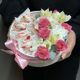 Букет из розы красной 7 шт и альстромерии микс 8 шт на день рождения, арт: 1800