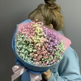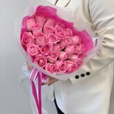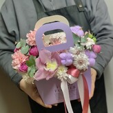 Букет из 5 кустовых ромашковидных хризантем с оформлением