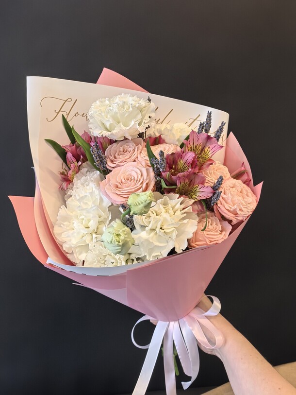 Букет доставлен вовремя, красивый, свежий, отлично упакован (в том числе от холода). Спасибо!