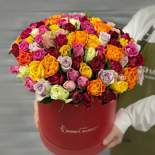 Мы доставляем букеты разноцветные в коробке большие в москве в Москве в удобное для вас время. Отзывы покупателей, которые успели купить цветы, подтверждают высокий уровень сервиса Flawery.