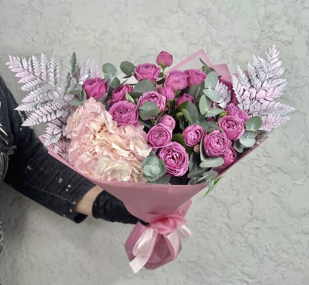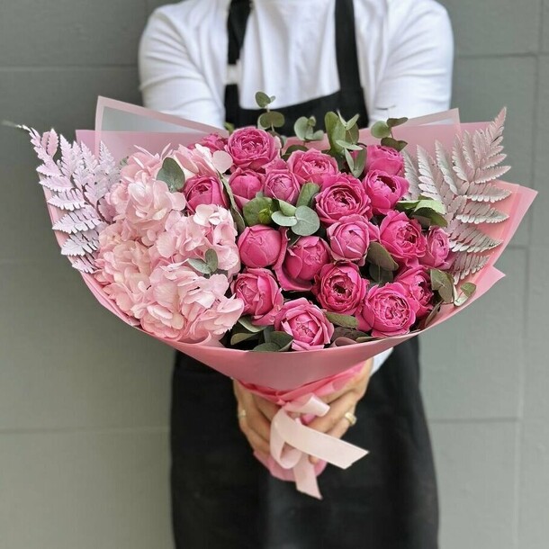 Мы доставляем букеты розовые c гортензией в москве в Москве быстро и бережно. Отзывы покупателей, которые успели заказать цветы, подтверждают качество сервиса Flawery.