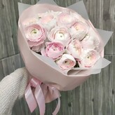 Мы доставляем букеты розовые c ранункулусом в москве в Москве быстро и бережно. Отзывы покупателей, которые успели заказать букеты цветов, подтверждают качество сервиса Flawery.
