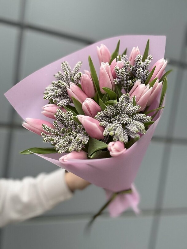 Мы доставляем букеты розовые c тюльпаном в москве в Москве быстро и бережно. Отзывы покупателей, которые успели заказать букеты цветов, подтверждают качество сервиса Flawery.