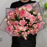 Мы доставляем букеты розовые в пленке средние в москве в Москве быстро и бережно. Отзывы покупателей, которые успели заказать цветы, подтверждают качество сервиса Flawery.