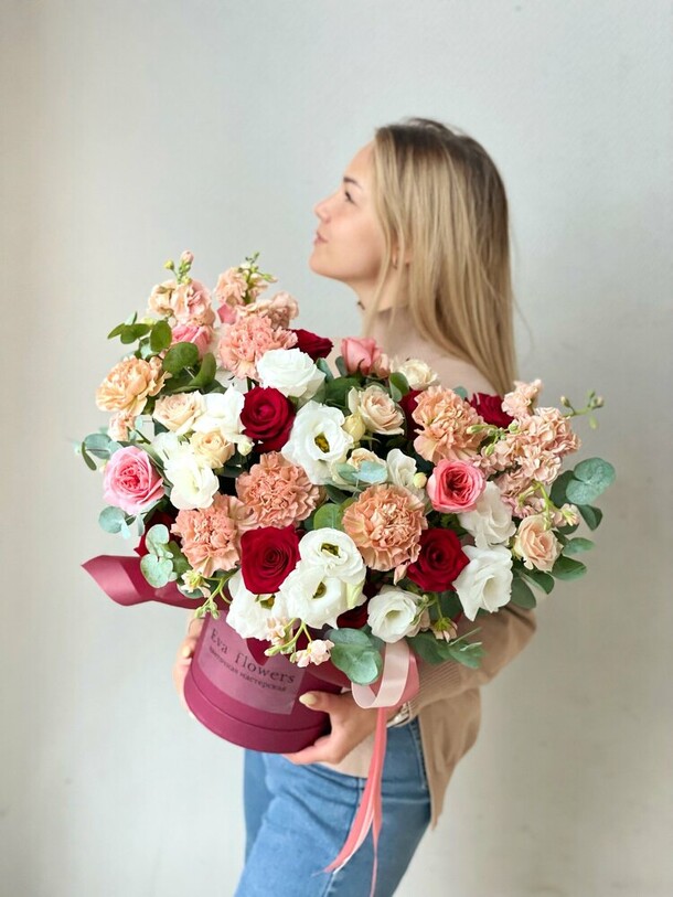 Мы доставляем букеты красные в коробке в москве в Москве быстро и бережно. Отзывы покупателей, которые успели заказать цветы, подтверждают качество сервиса Flawery.