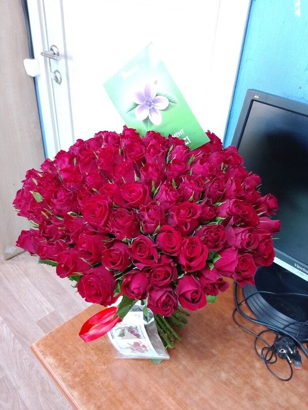 Очень красивый букет ароматных красных роз! Цена соответствует качеству. Единственное, заказ задержался в пути из-за пробок на полчаса, а букет очень ждали к определенному времени. Хорошо, что курьер позвонил и предупредил, за что отдельное спасибо!