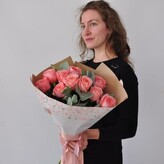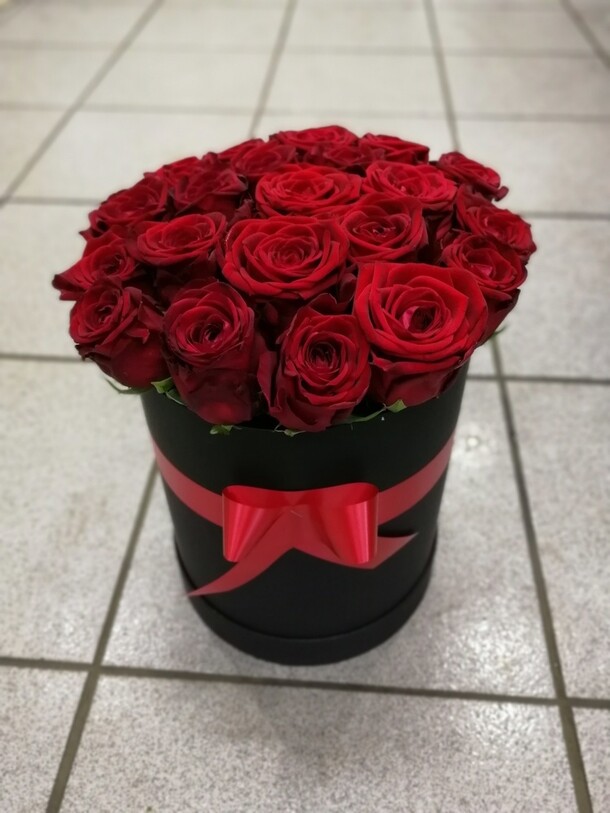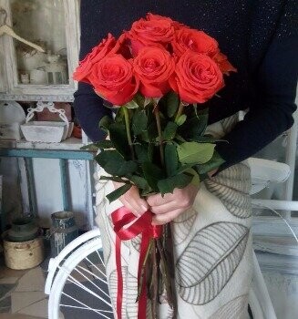 Взяла сразу два букета соединив в 1 , 17 штук, потрясающие розы, высокие, правда цвет немного другой -благородный бордо но от этого эффект ещё лучше :очень торжественно получилось ,спасибо огромное!