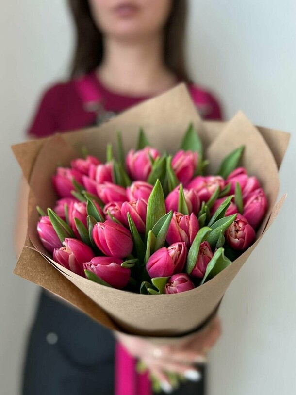 Заказал тюльпаны - 51 шт. Доставили в указанный интервал.