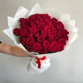 Красивый букет из 61 красной розы в белой упаковке 60см