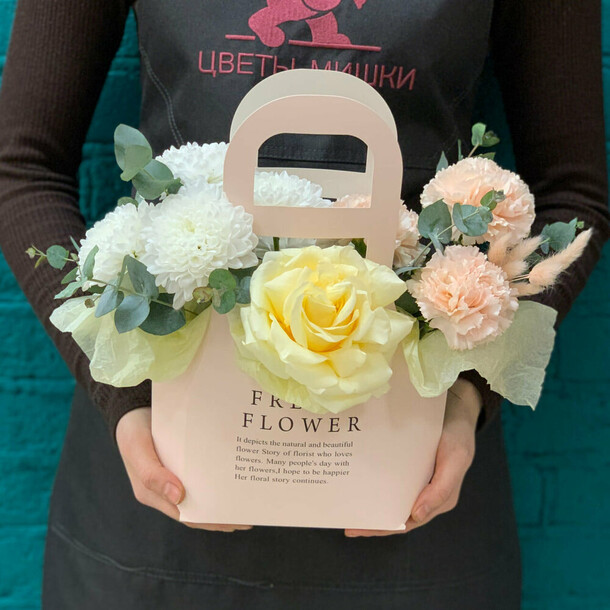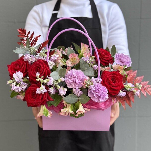 Мы доставляем букеты со сумкой в москве в Москве быстро и бережно. Отзывы покупателей, которые успели купить букет цветов, подтверждают качество сервиса Flawery.