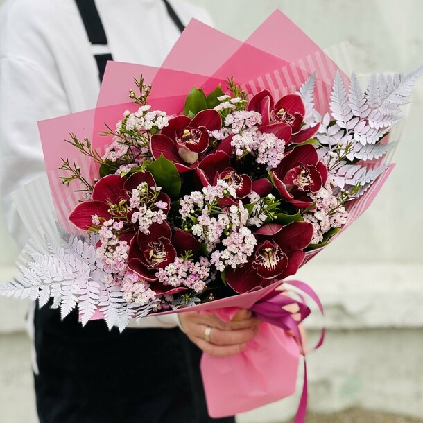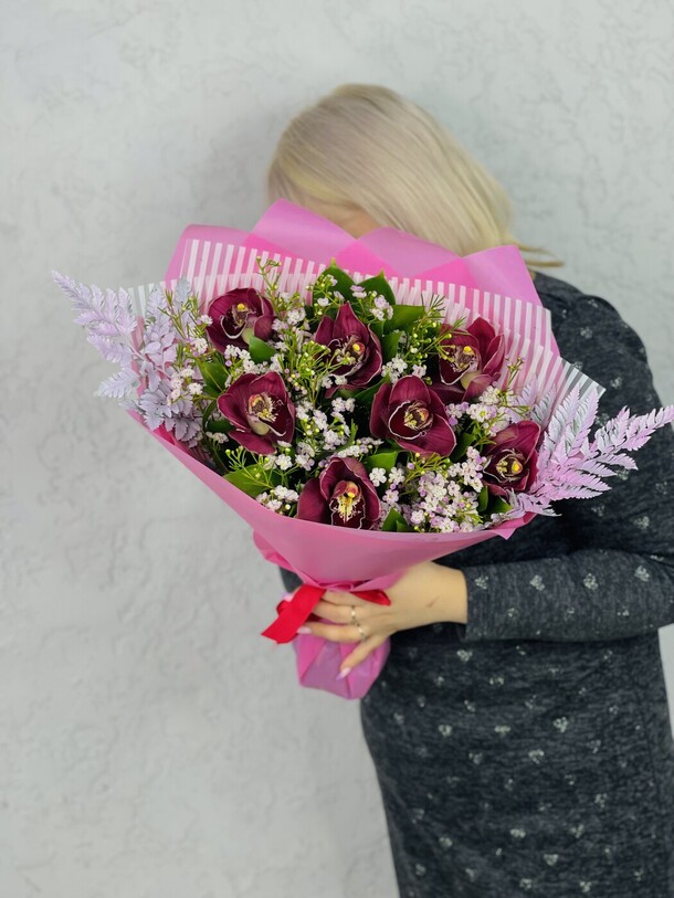 букет красивый. забираю как всегда самовывозом. на вид букет свежий. но если рассматривать орхидеи впритык к 2 штучкам у меня вопросы, как будто уже бывалые) но вообщем классный. это уже, по моему, пятый или больше заказ в этом магазине и цветы всегда свежие и стоят долго.