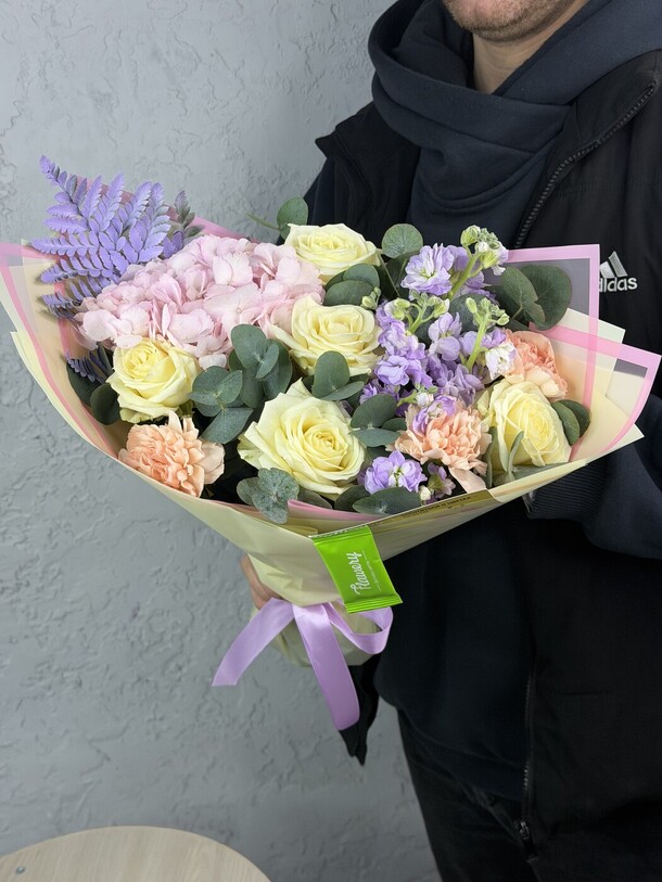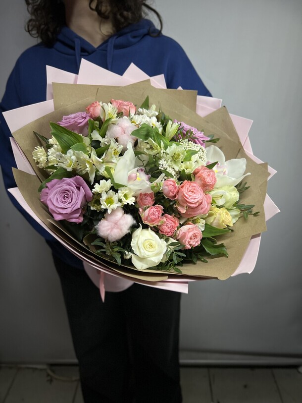 Огромное спасибо флористу за этот дивный букет, мы были в восторге, доставщику отдельная благодарность за целостность и сохранность цветов!