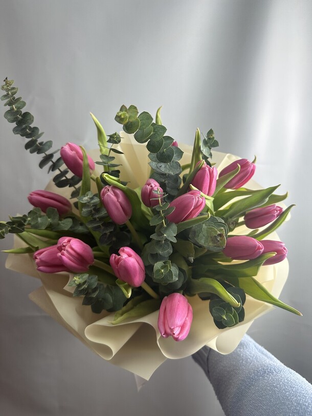 Флорист перепутал заказ. Вместо 25 тюльпанов отправила в доставку букет из 15. время доставки было заявлено с 9 до 14. В итоге на наши вопросы почему задерживается доставка (15:30) вразумительного ответа не последовало... "Букет передан курьеру" Итог- испорченное настроение получателя, доставка заказанного букета к празднику на следующий день (9 марта)