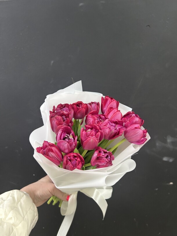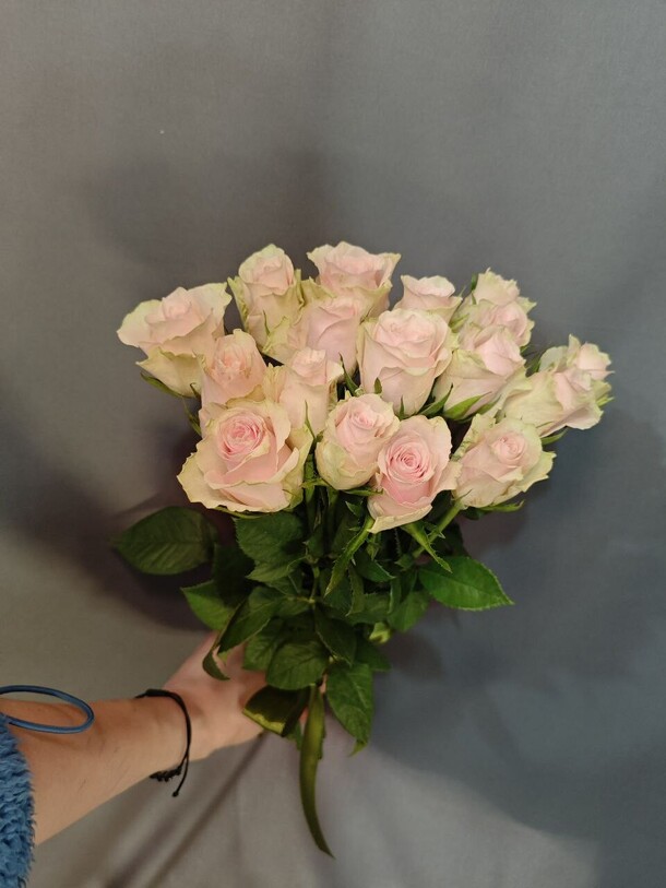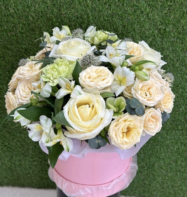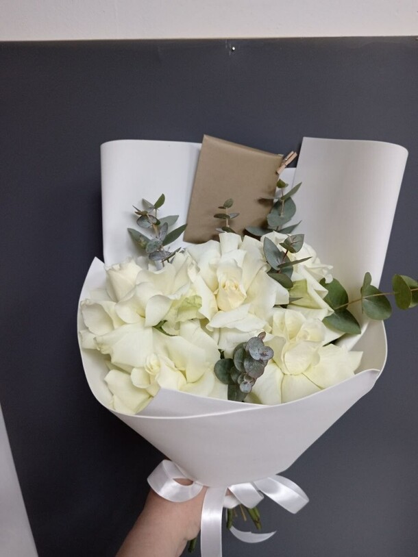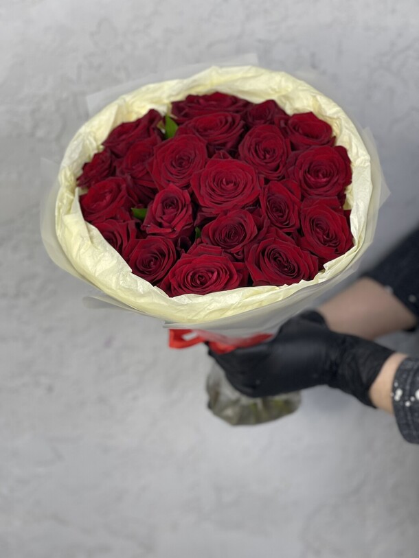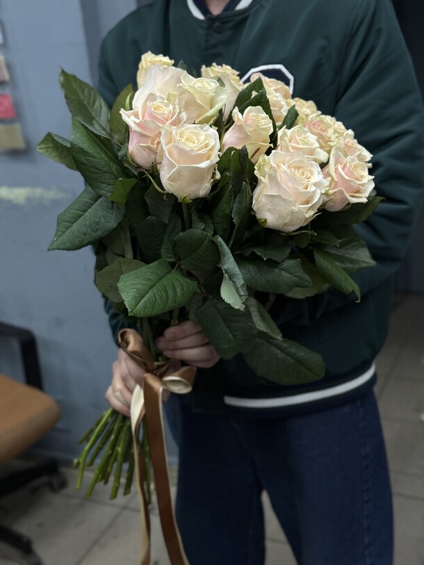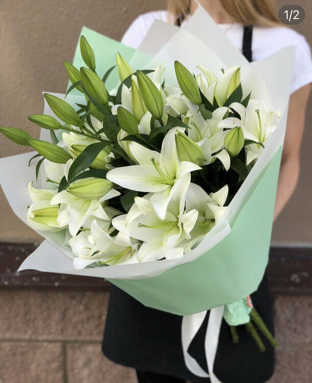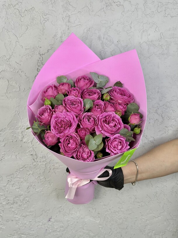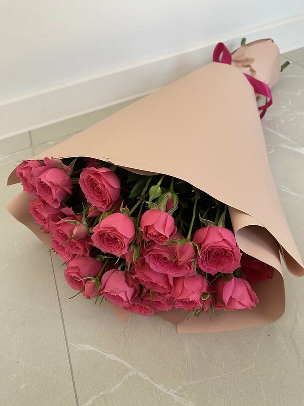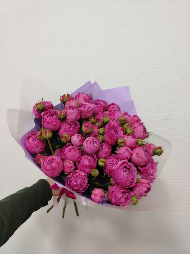 Цветы свежие, безумно вкусно пахнут. Привезли упаковано с водичкой. Спасибо за быструю доставку.