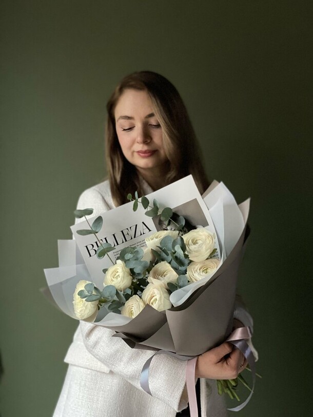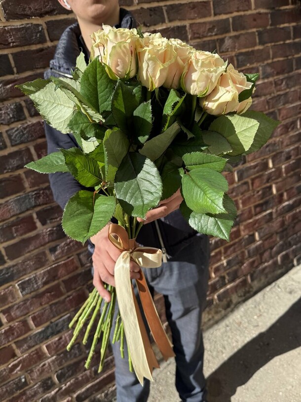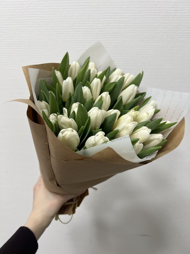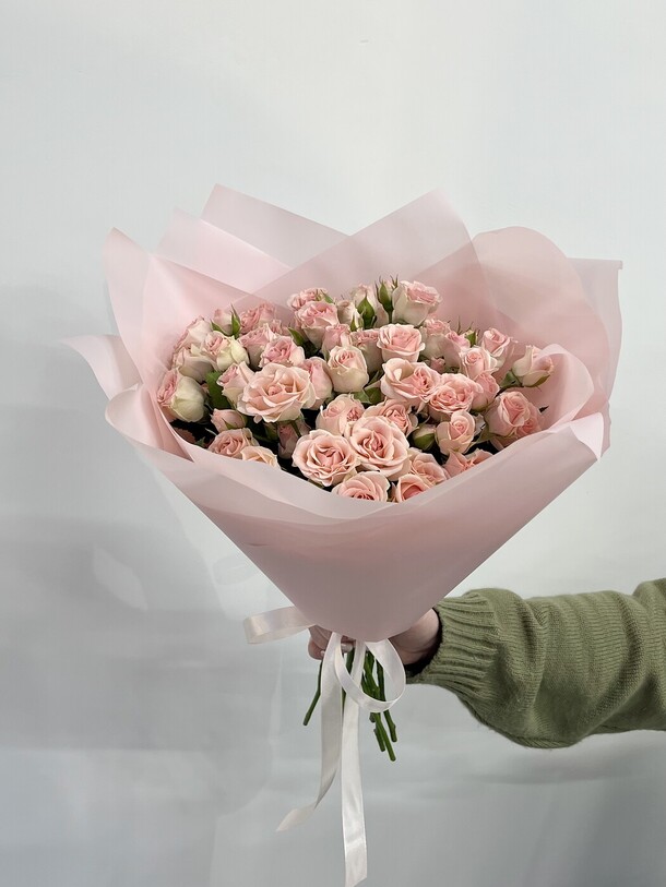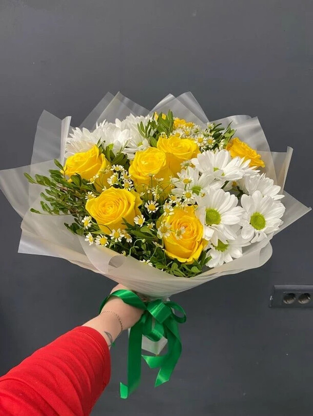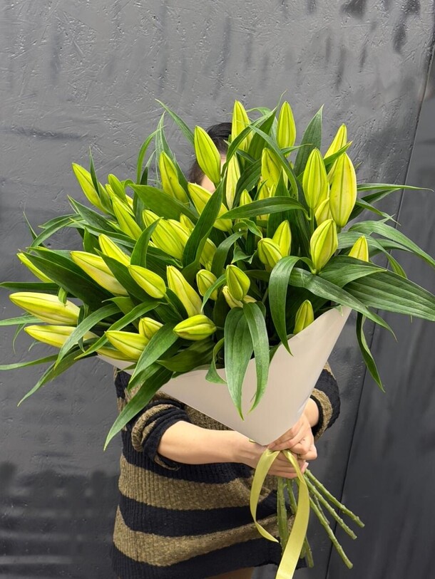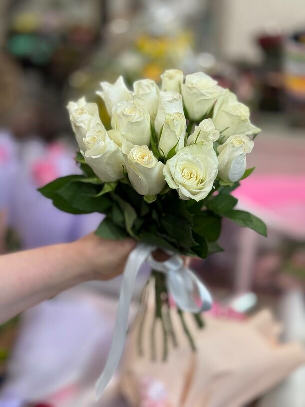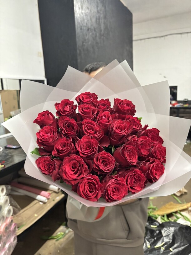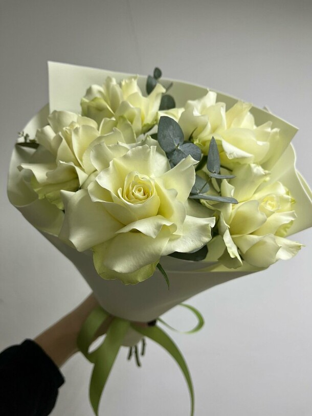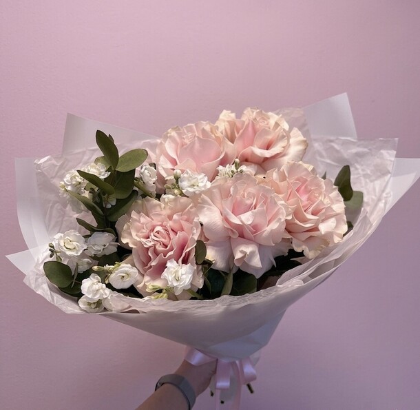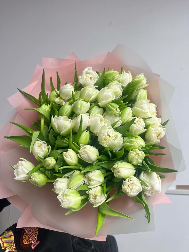 Цветы свежие, безумно вкусно пахнут. Привезли упаковано с водичкой. Спасибо за быструю доставку.