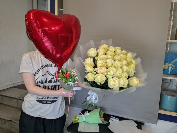 Все отлично, цветы 1 в 1 как на фото, даже больше, как мне показалось. Очень приятный сервис, отзывчивые консультанты и флористы, доставили очень быстро. Огромное спасибо!