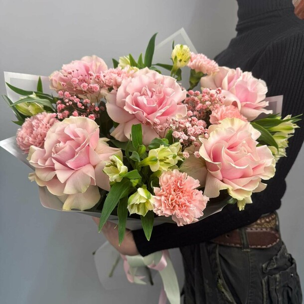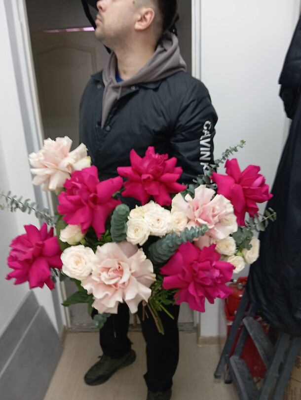 Заказал букет на 8ое марта заранее, 5 или 6 числа, выбрал доставку с 9 до 14. В итоге получил цветы только в 19 часов, звонил несколько раз, уточнял по заказу тк статус не актуальный. Общались вежливо, букет красивый, свежий.