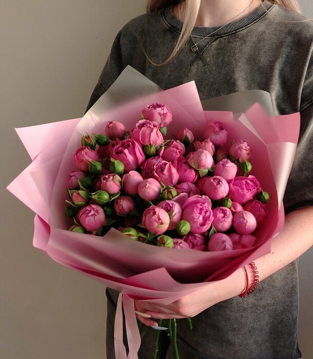 В реальности букет выглядит намного скромнее чем на фото. Размер бутонов с большой палец.